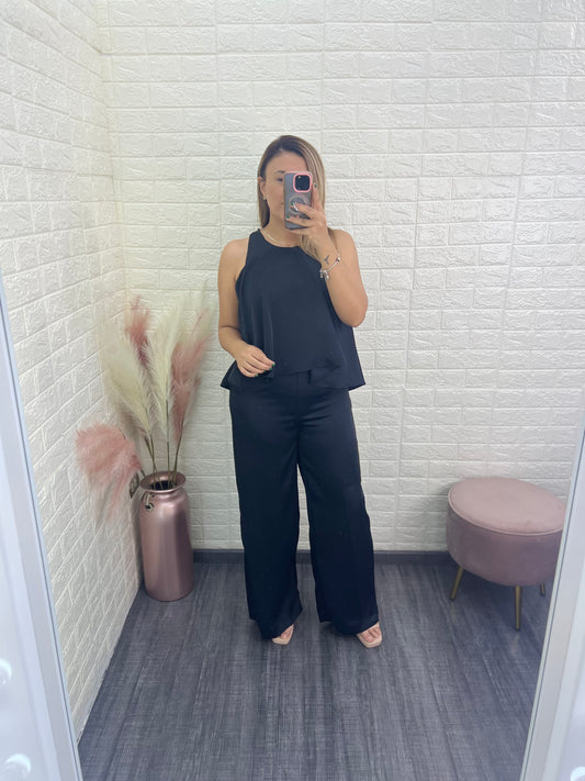 Palazo Negro de Vestir con Sobre Blusa de Tirantes