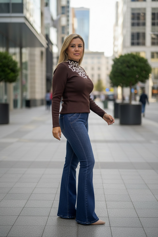 Suéter Color Arena Brilloso con Botones Dorados Decorativos