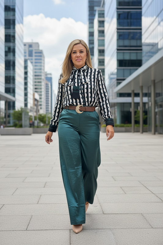 Blusa Casual de Manga Larga Color Verde Esmeralda