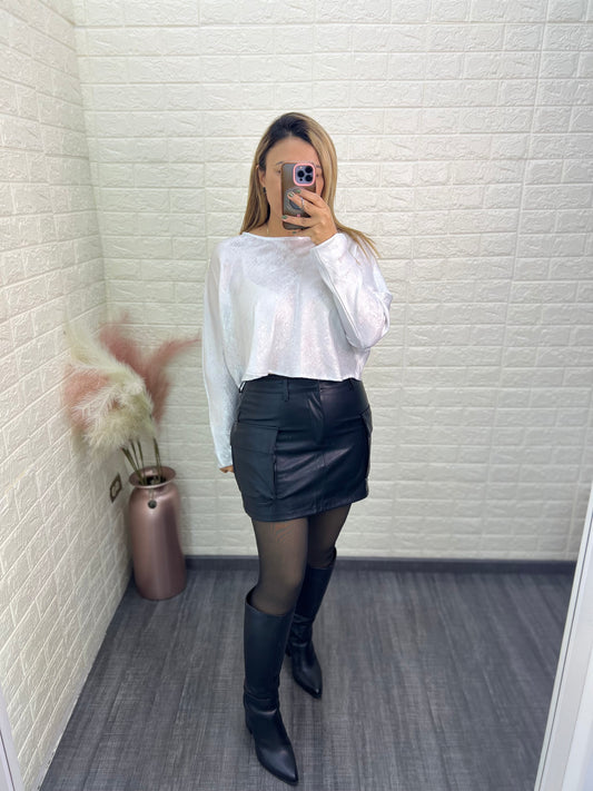 Blusa Corta Holgada de Manga Larga Color Plata Metàlico