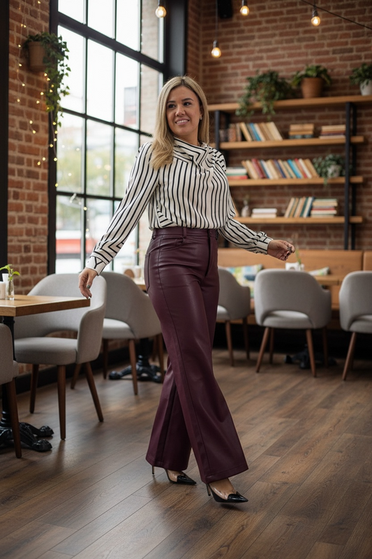 Blusa Color Mocca Básica de Textura Rayada