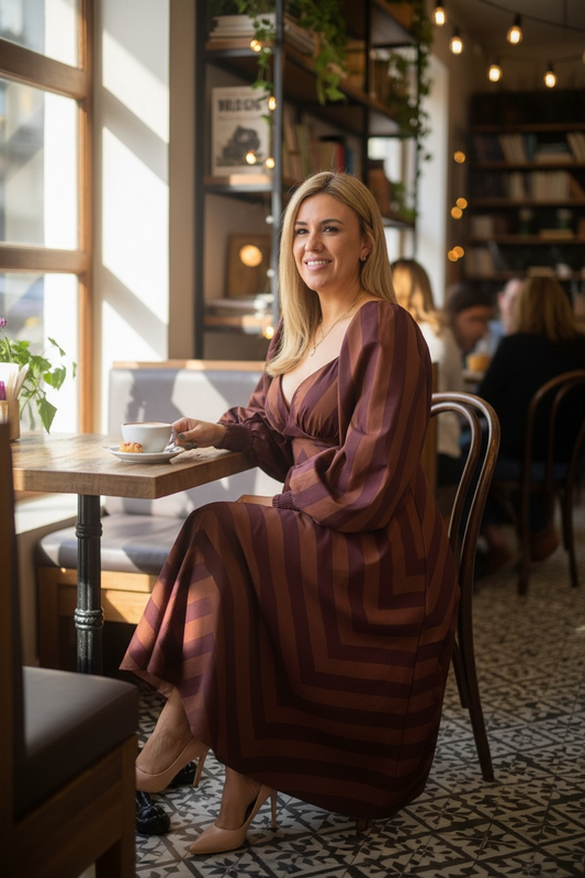 Vestido Largo de Botones Estampado Zebra Print en Café