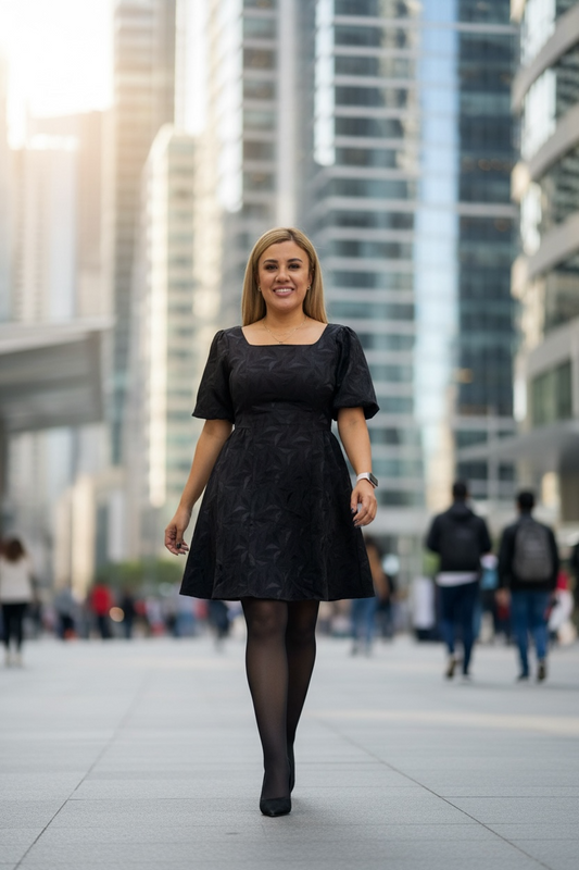 Vestido Negro Satín con Aplicacion de Lentejuela