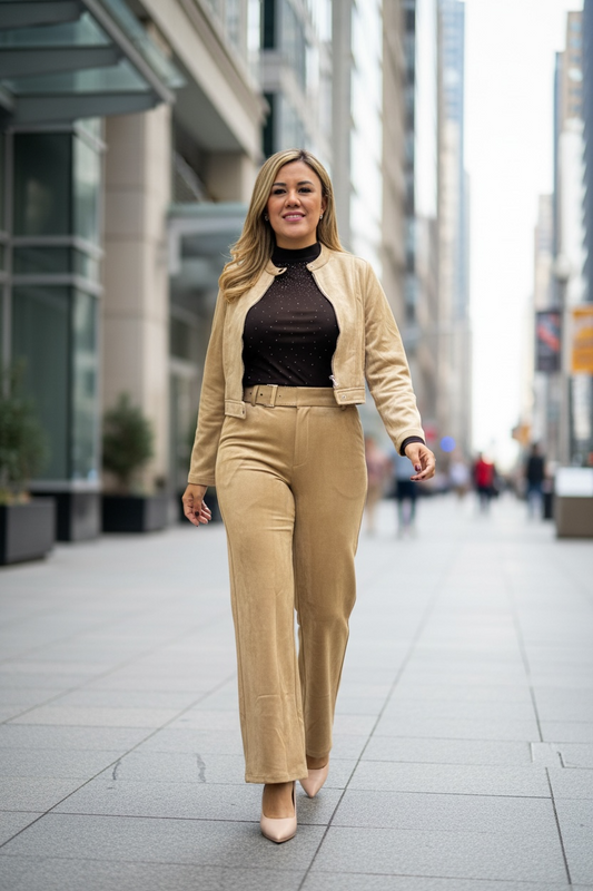 Chaquetín Color Taupe en Tela de Piel de Durazno