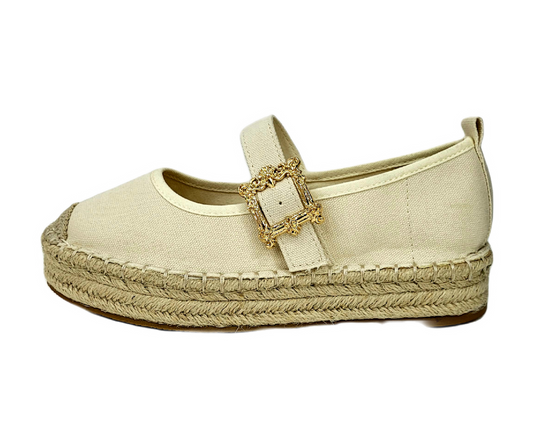 Zapatilla Tipo Mocasín de Lino con Suela Tipo Yute