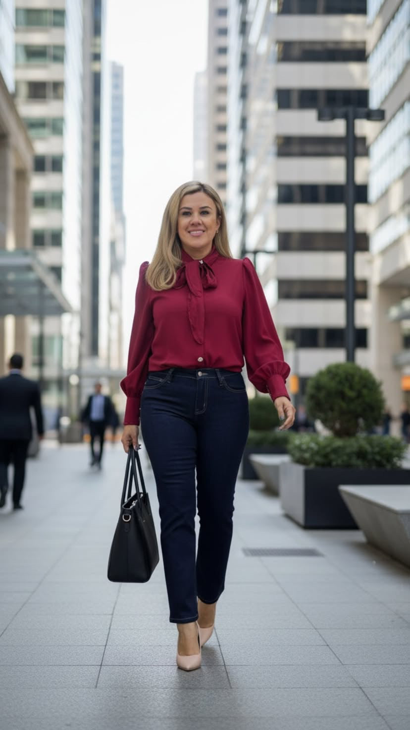 Blusa Casual de Manga Larga Color Guindo
