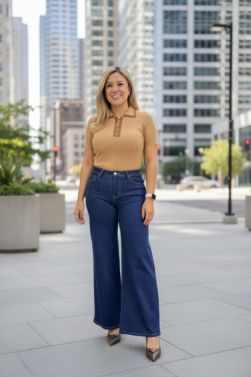 Blusa Color Camel Cuello Polo con Café