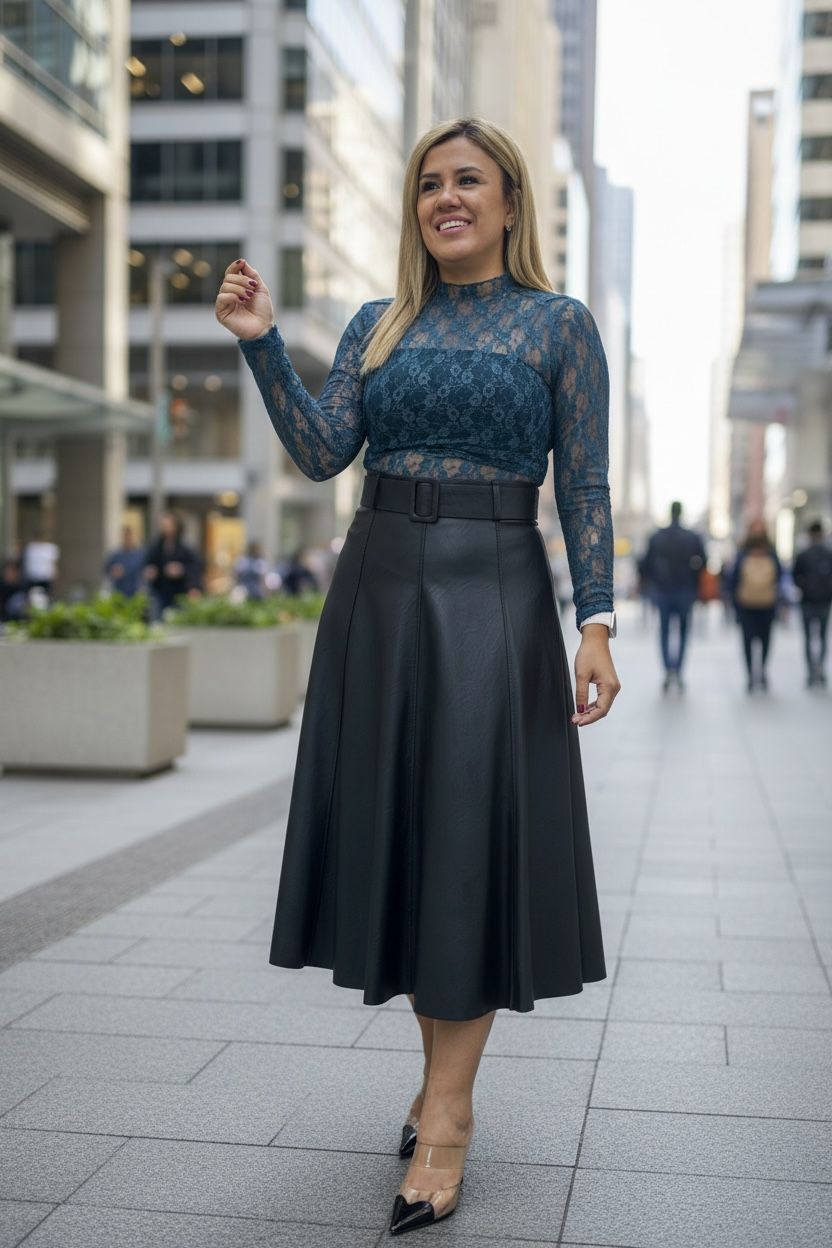 Blusa Color Turquesa de Encaje de Manga Larga
