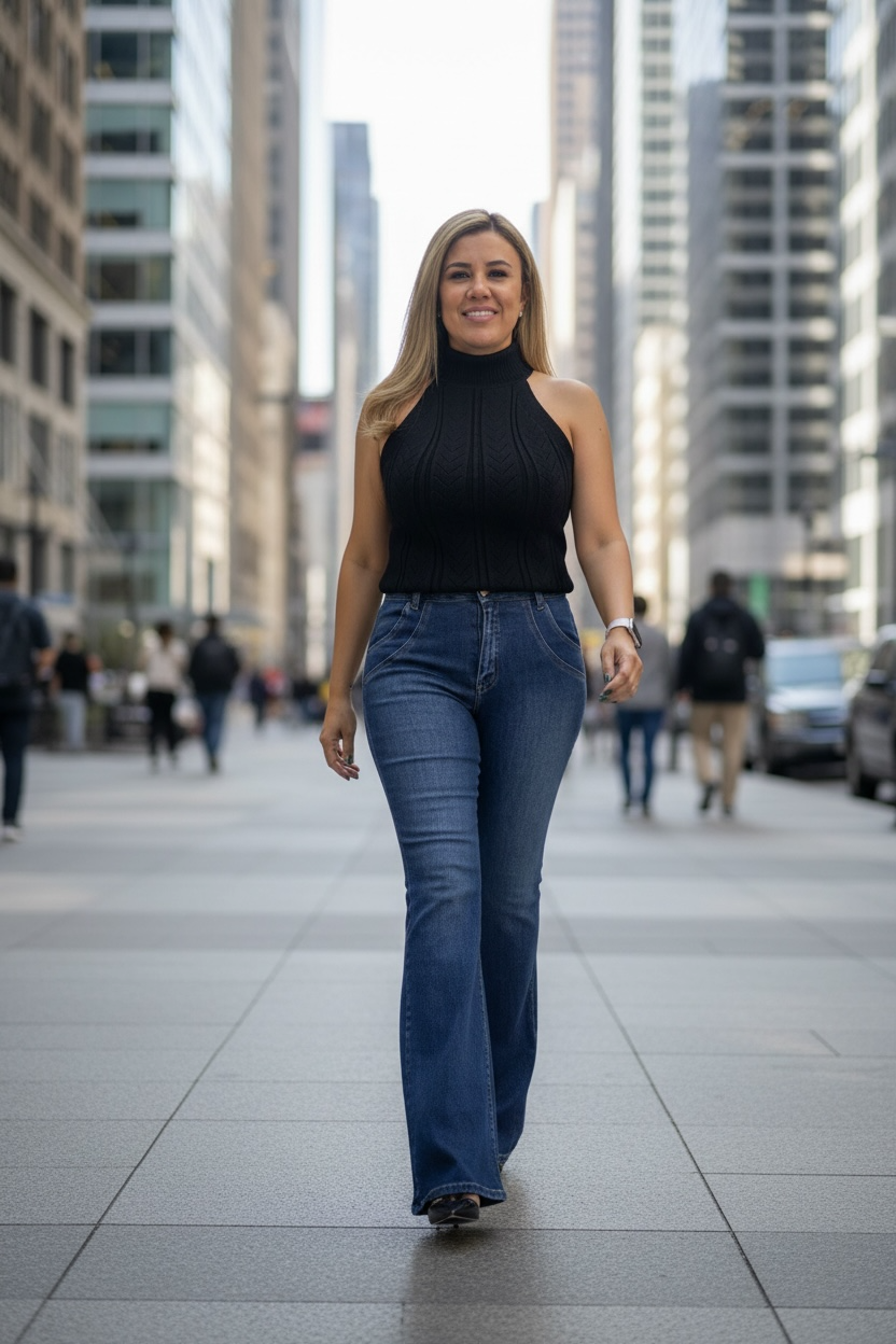 Blusa Negra Tipo Suéter sin Mangas y de Cuello de Tortuga