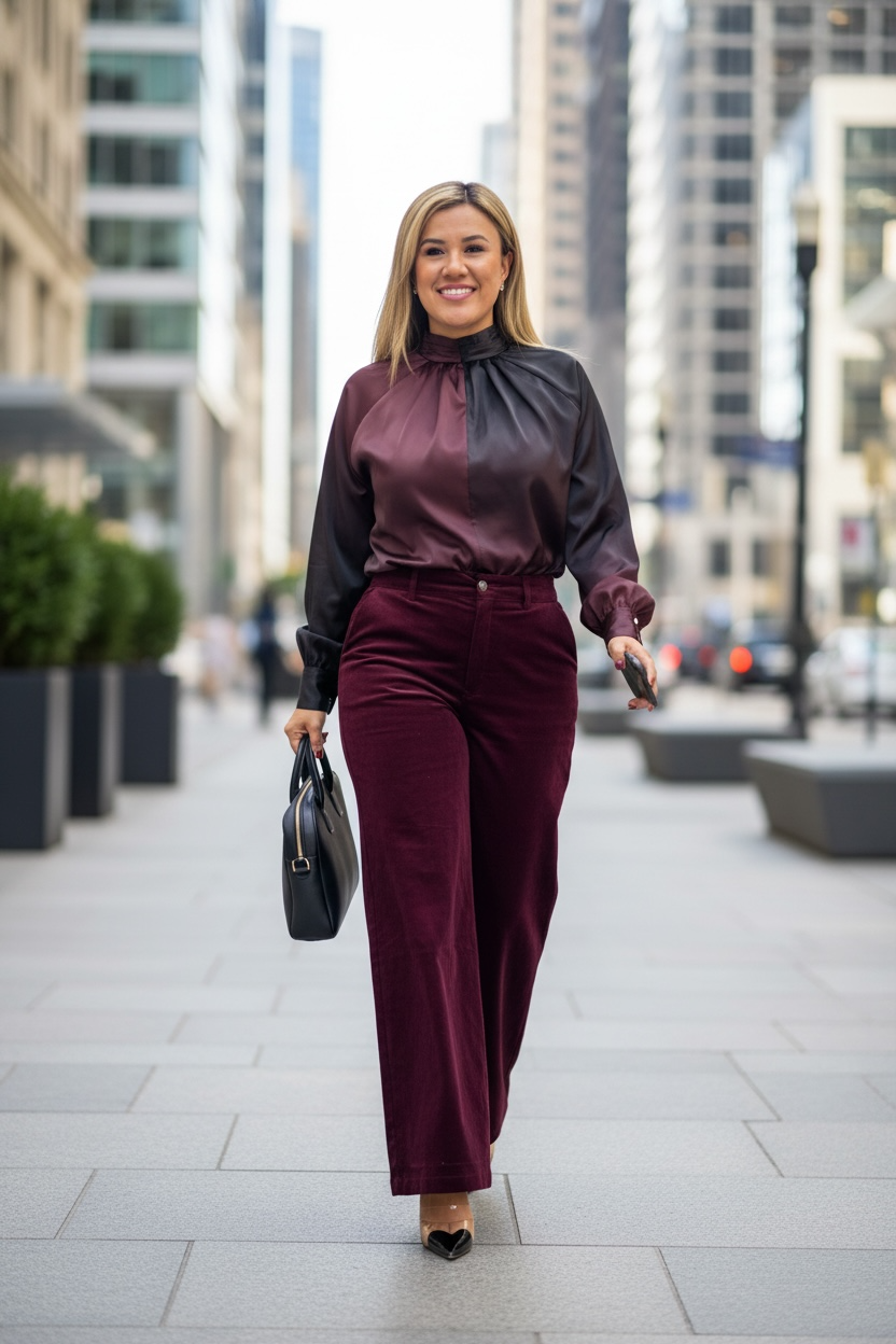 Blusa Satinada Mixta Guindo con Negro
