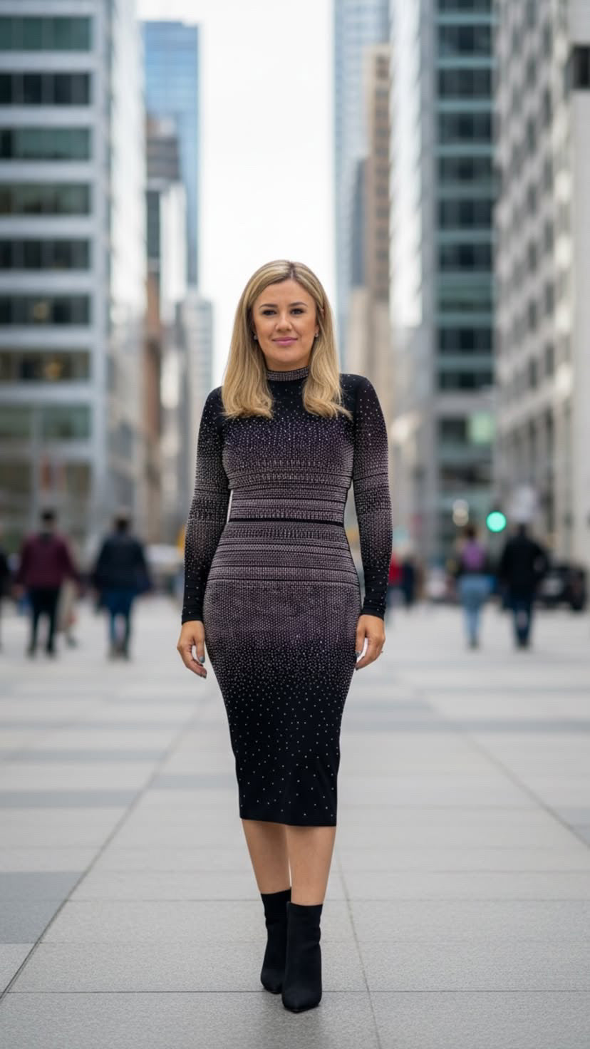 Conjunto de Blusa y Falda Negros con Brillos en Plata