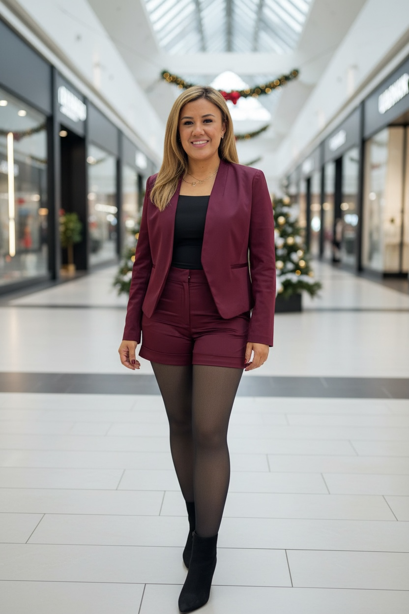 Short Casual con Valenciana Color Guindo Obscuro
