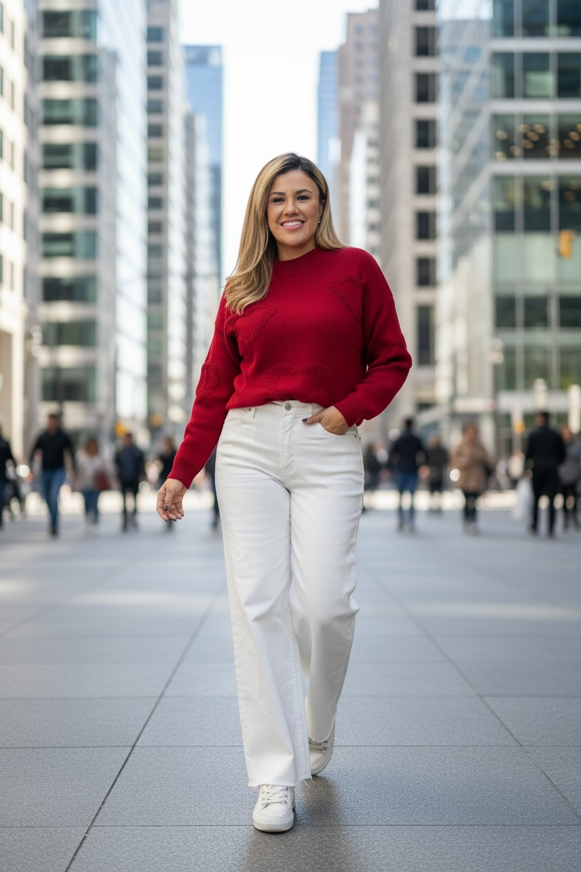 Suéter Rojo con Corazones Tejidos