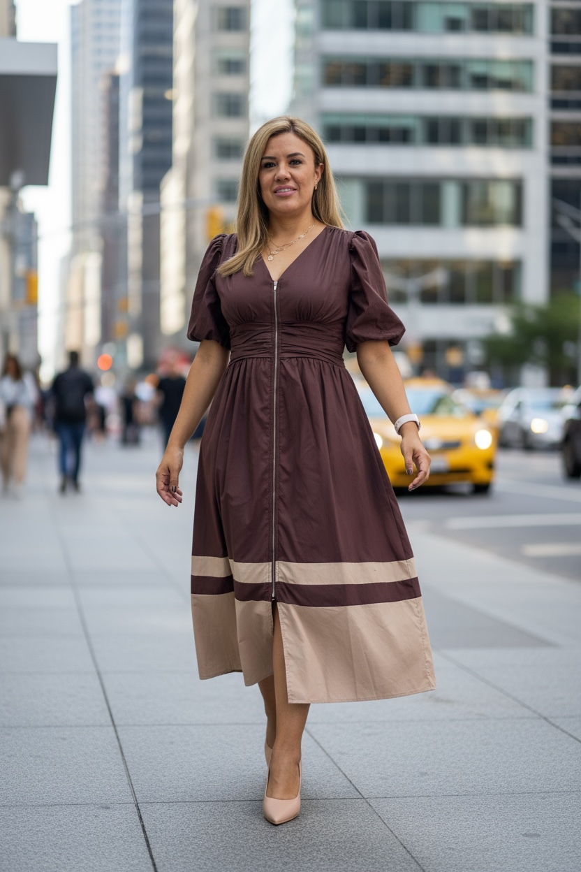 Vestido Café Largo de Cierre Completo