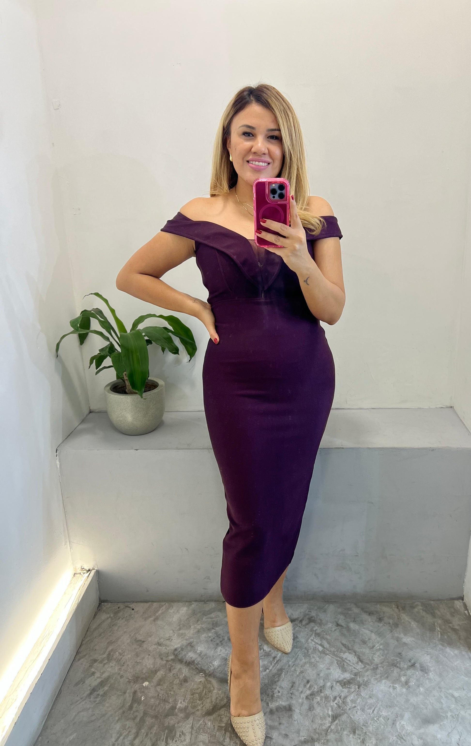 Vestido de noche en elegante tono uva, diseñado para un ajuste ceñido que realza la silueta y aporta un look sofisticado y femenino. Confeccionado en tela de alta calidad, combina comodidad y estilo para ocasiones especiales como cenas, eventos formales o celebraciones nocturnas. Perfecto para complementar con tacones y accesorios brillantes que destaquen la elegancia del conjunto.