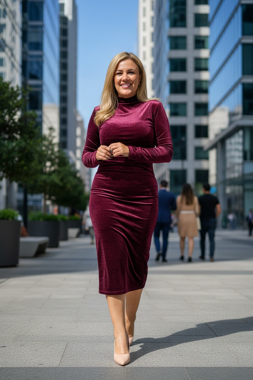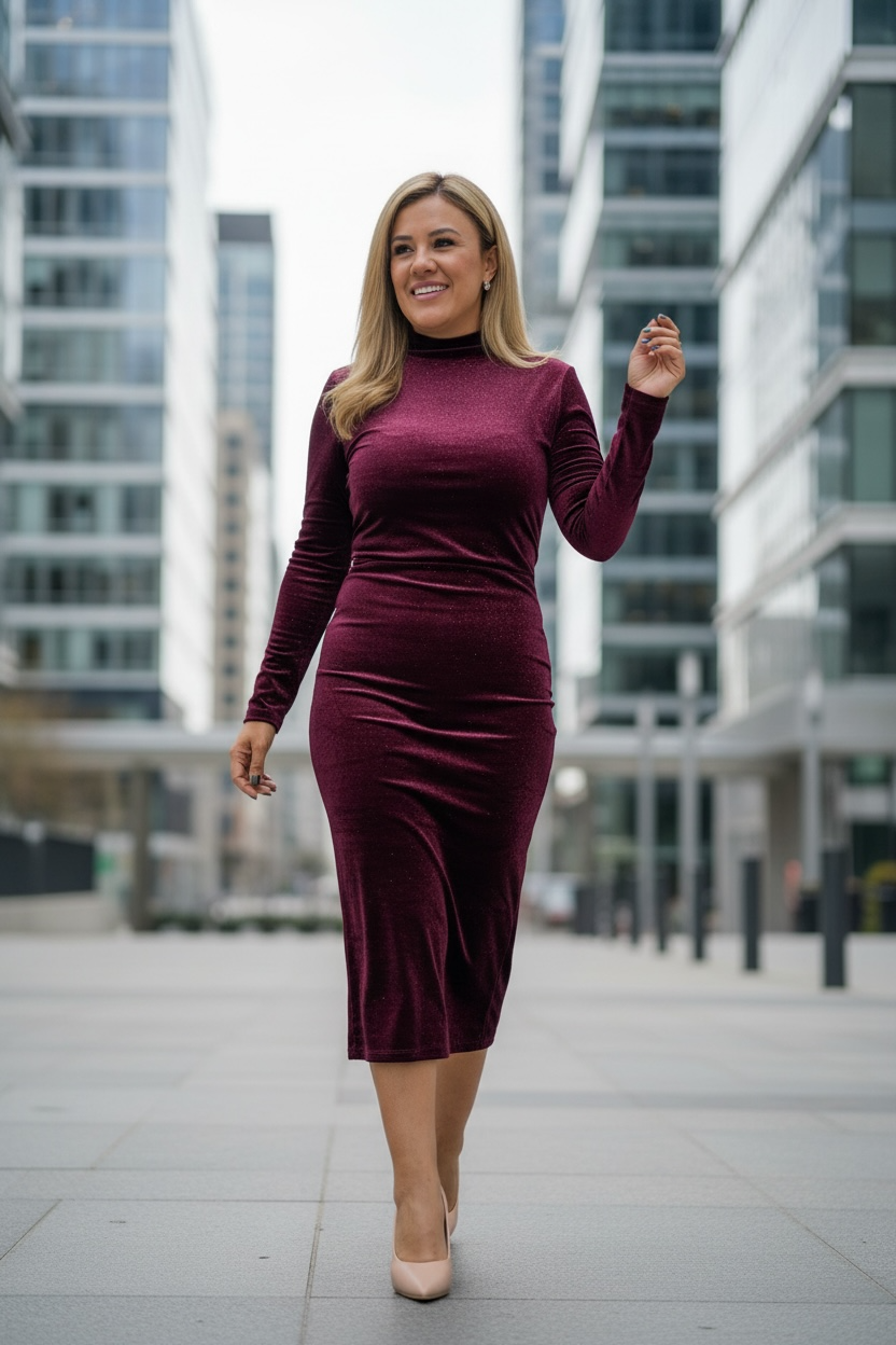 Vestido Guindo Metálico de Manga Larga Tela de Velvet