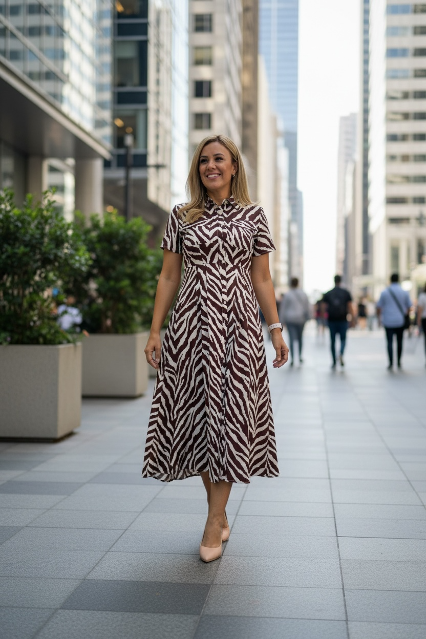 Vestido Largo de Botones Estampado Zebra Print en Café